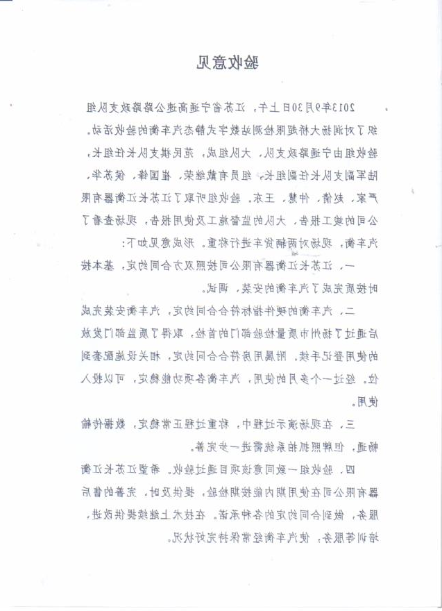 江苏省宁通高速公路路政支队组织专家组对润扬大桥超速监测站江苏德信体育官网 生产安装的汽车衡进行验收。以下是验收资料: